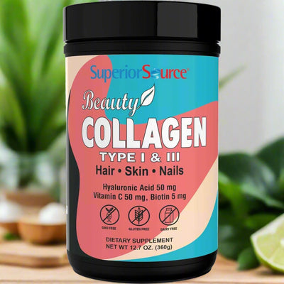 Superior Source Beauty Collagen Peptides – Hydrolyzed Types 1 & 3, Hyaluronic Acid, Vitamin C & Biotin