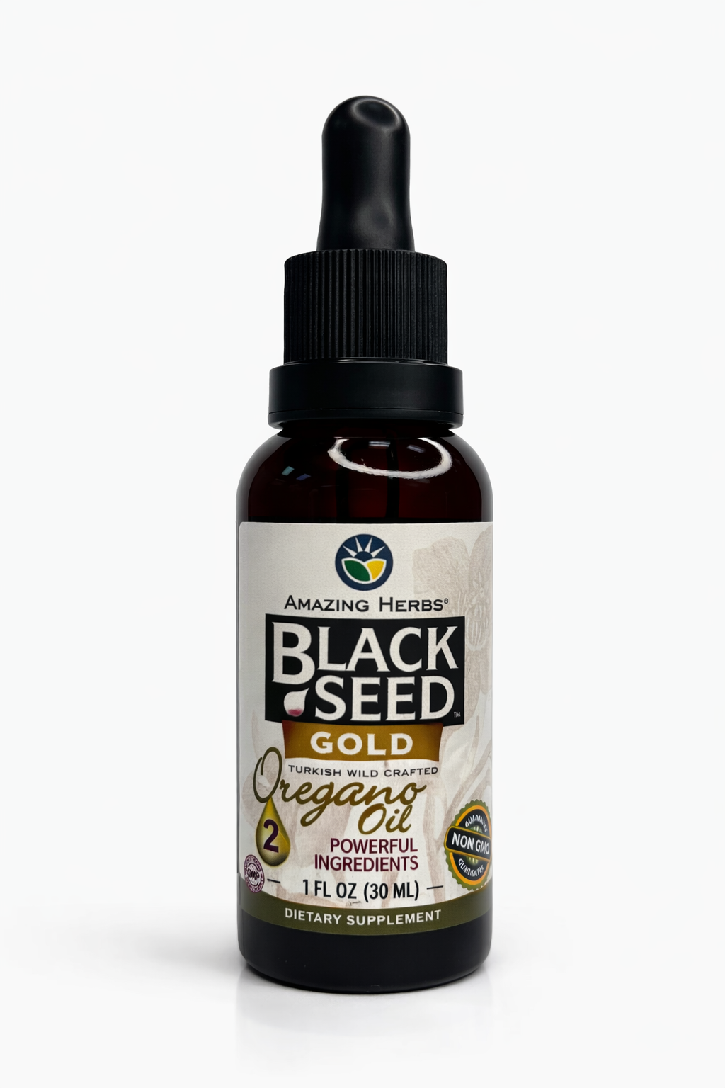 Amazing Herbs Black Seed with Oregano Oil blends 100% fresh-pressed Nigella sativa with Turkish wild oregano oil standardized to 70% carvacrol. This easy-to-use liquid formula supports immune balance, cardiovascular and respiratory wellness, digestive comfort, and cognitive support.* Made under FDA-approved GMP standards, it’s free from gluten, preservatives, and artificial additives for superior absorption and quality.