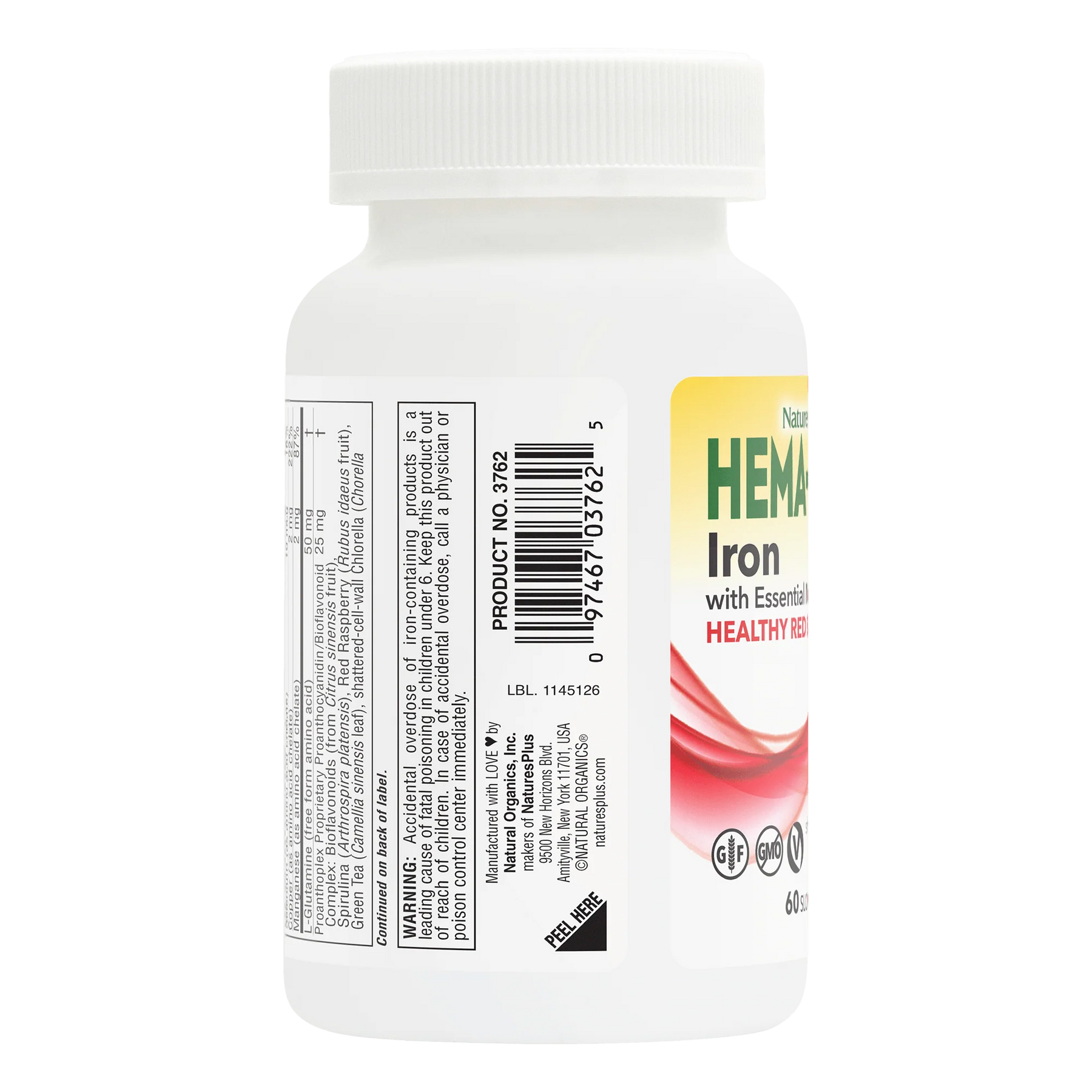 HEMA-PLEX Iron Tablets deliver high-potency, slow-release iron with essential cofactors and enhanced absorption—formulated to support total blood health without stomach discomfort.